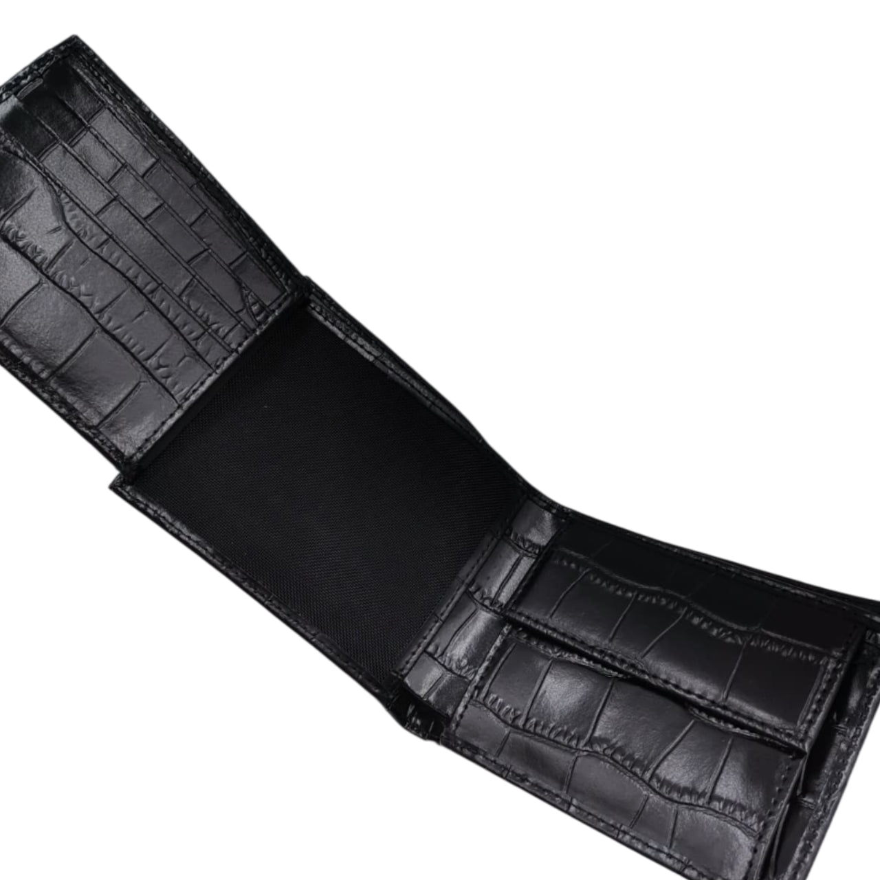 L’interno, ben organizzato, dispone di scomparti per carte, banconote e documenti, oltre a un portamonete con chiusura e una pratica pattina che assicura ordine e funzionalità. Compatto e resistente, è perfetto da portare in tasca o in borsa, ideale per accompagnare con classe ogni occasione.
